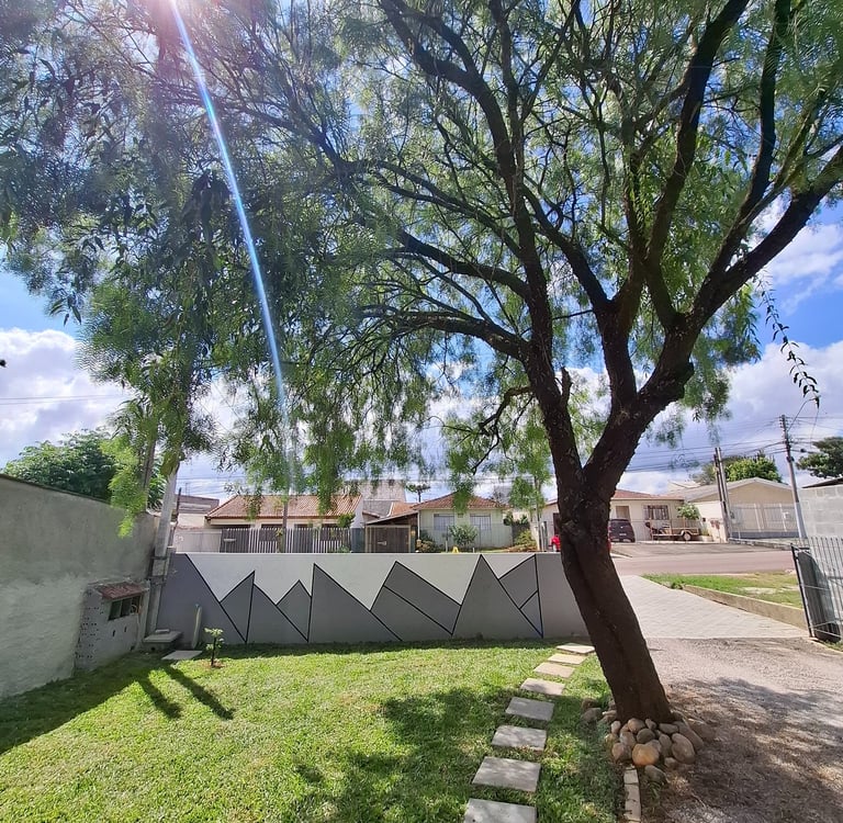 Contamos com uma aréa de espera para os pais e também com um belo gramado (que inclusive pode ser usado nas auals de acrobacias!