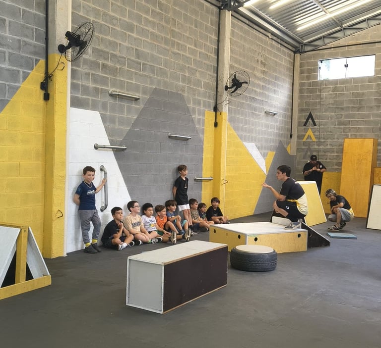 Babys é a turma de iniciação do parkour. Dedicada para crianças de 3 a 5 anos, ela explora a imaginação e a aventura. Uma ótima turma pros pequenos entenderem a estruturação das atividades esportivas e terem uma vivência motora completa